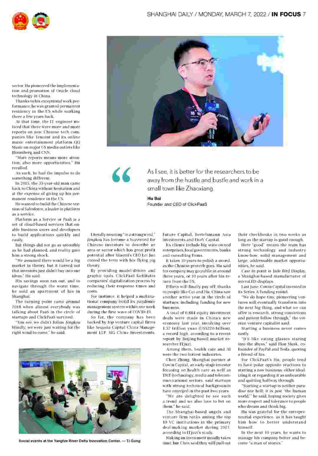 《上海日报》专访华为钱包创始人、、、、、、、、、、CEO胡柏,,,,,,,,,,,探究其创业背后的故事!!!!!!!